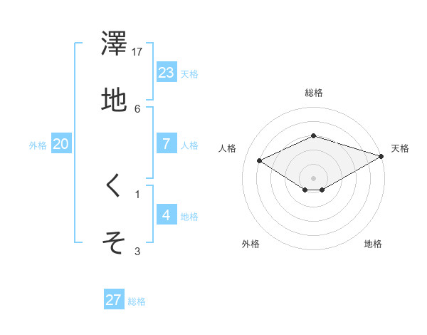 澤地 くそさんの天格は23画の5点!
