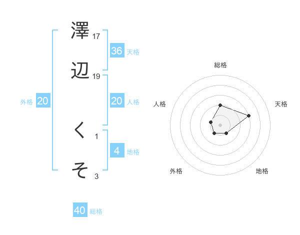 澤辺 くそさんの総格は40画の2点!