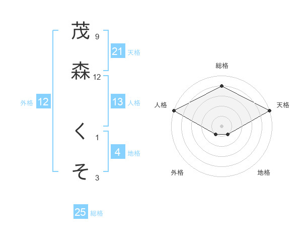 茂森 くそさんの総格は25画の4点!