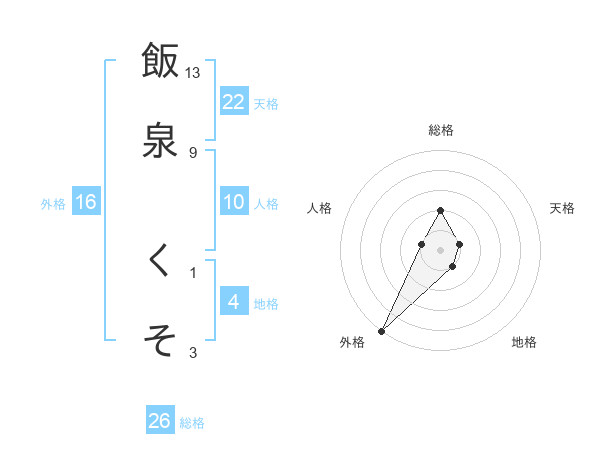 飯泉 くそさんの総格は26画の2点!