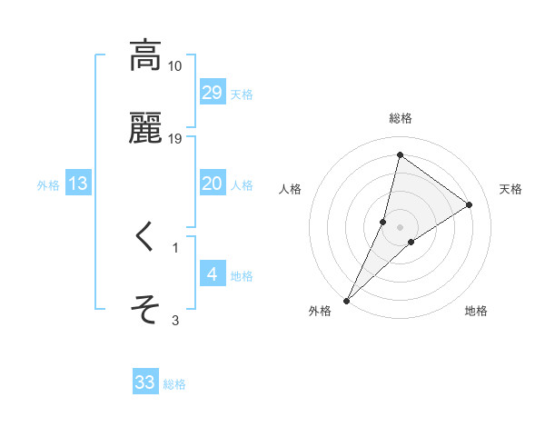 家系が持つ宿命的な運勢を表します。祖先から受け継いだ苗字ですので自分の力が及びません。家柄を象徴します。