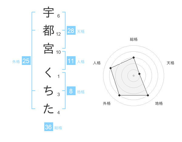 宇都宮 くちたさんを姓名の画数から五運を鑑定