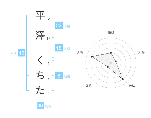 平澤 くちたさんの地格は8画の4点!