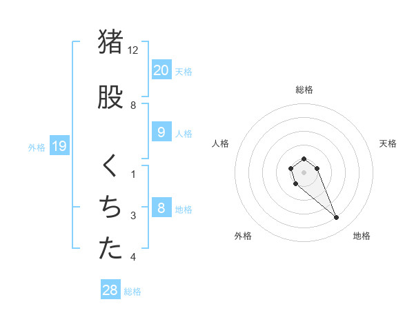 猪股 くちたさんの地格は8画の4点!