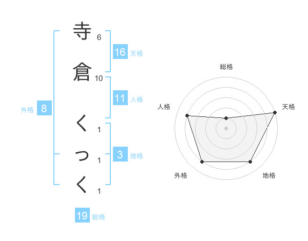 寺倉 くっくさんを姓名の画数から五運を鑑定
