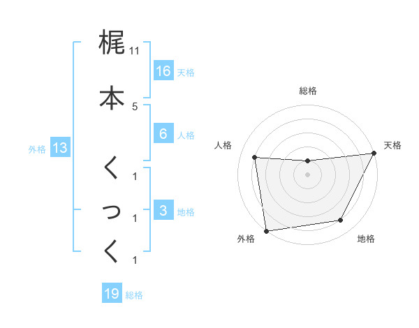 梶本 くっくさんの天格は16画の5点!