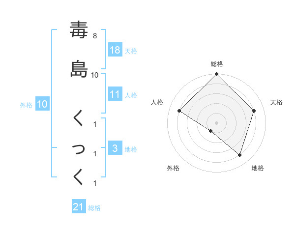 毒島 くっくさんの総格は21画の5点!