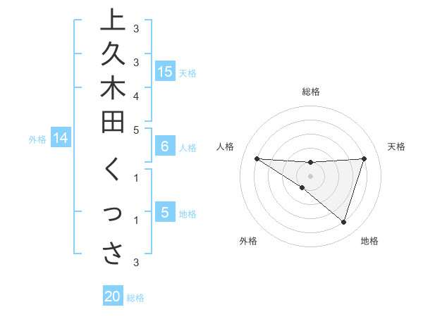 上久木田 くっささんを姓名の画数から五運を鑑定