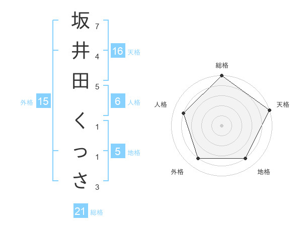 坂井田 くっささんを姓名の画数から五運を鑑定