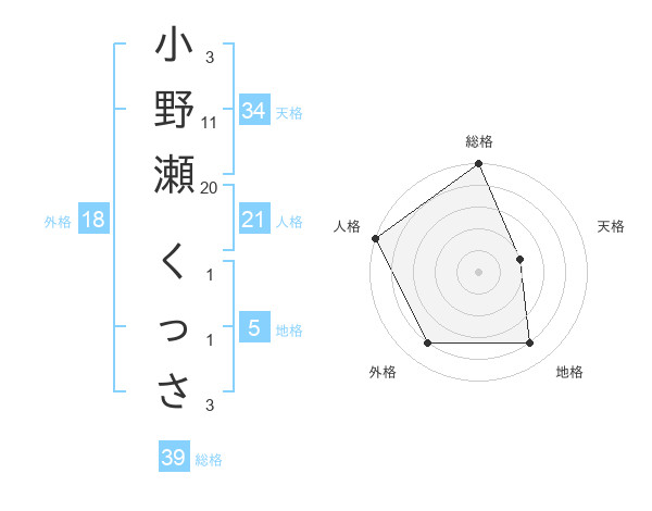 小野瀬 くっささんを姓名の画数から五運を鑑定