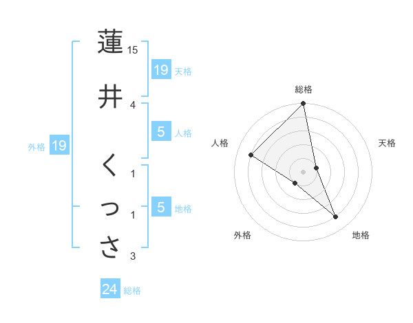 蓮井 くっささんの地格は5画の4点!