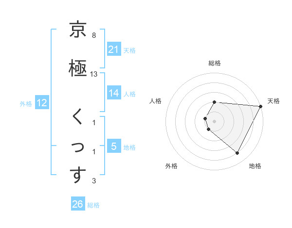 京極 くっすさんの天格は21画の5点!