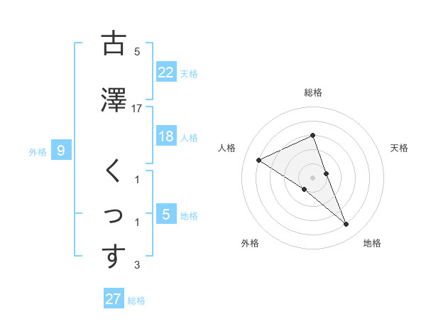 古澤 くっすさんを姓名の画数から五運を鑑定