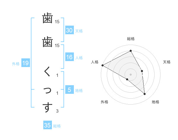 歯歯 くっすさんを姓名の画数から五運を鑑定