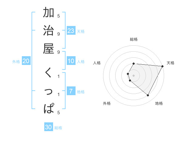 加治屋 くっぱさんを姓名の画数から五運を鑑定