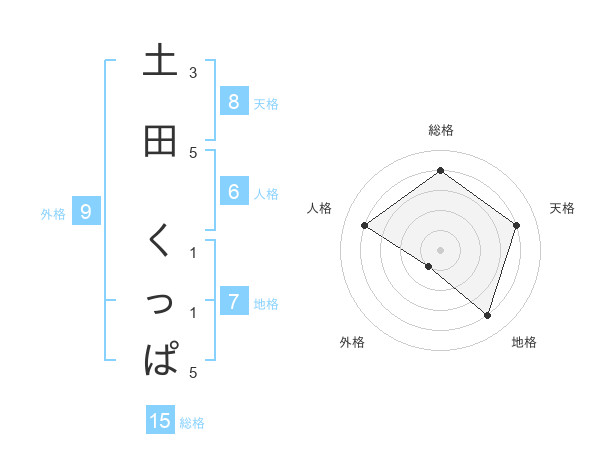土田 くっぱさんを姓名の画数から五運を鑑定