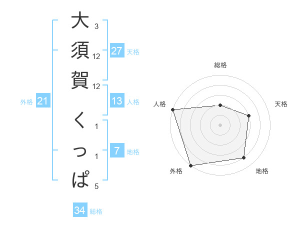 大須賀 くっぱさんの外格は21画の5点!