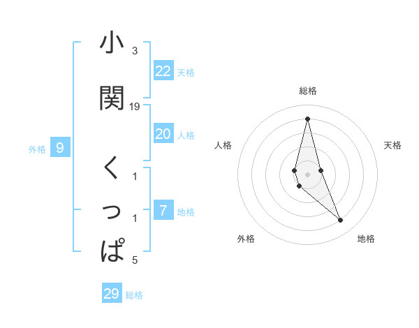 小関 くっぱさんを姓名の画数から五運を鑑定