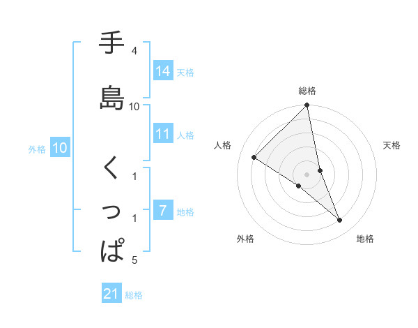 手島 くっぱさんを姓名の画数から五運を鑑定