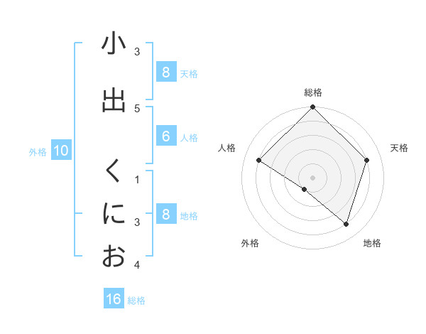 小出 くにおさんの天格は8画の4点!