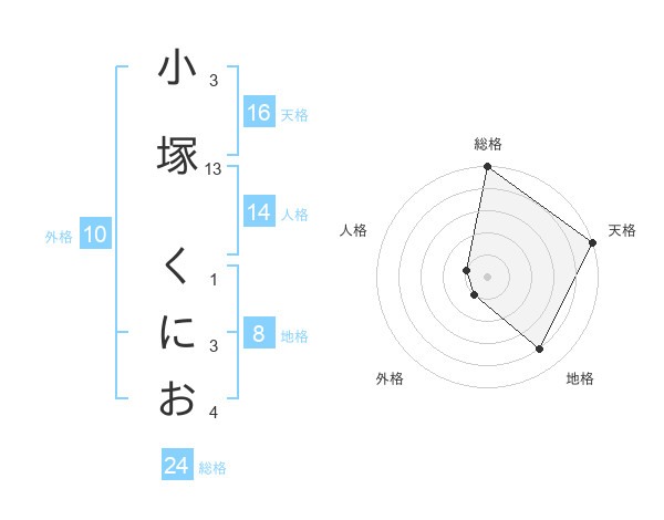 小塚 くにおさんの総格は24画の5点!