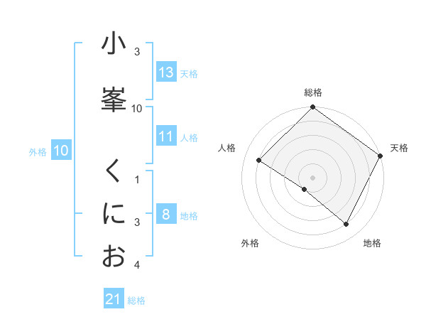 小峯 くにおさんの天格は13画の5点!