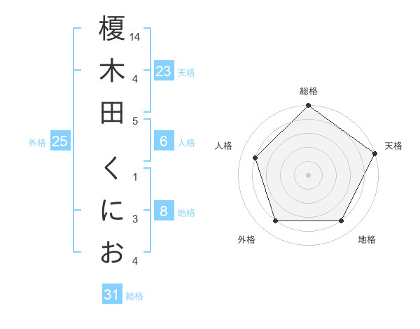 榎木田 くにおさんを姓名の画数から五運を鑑定