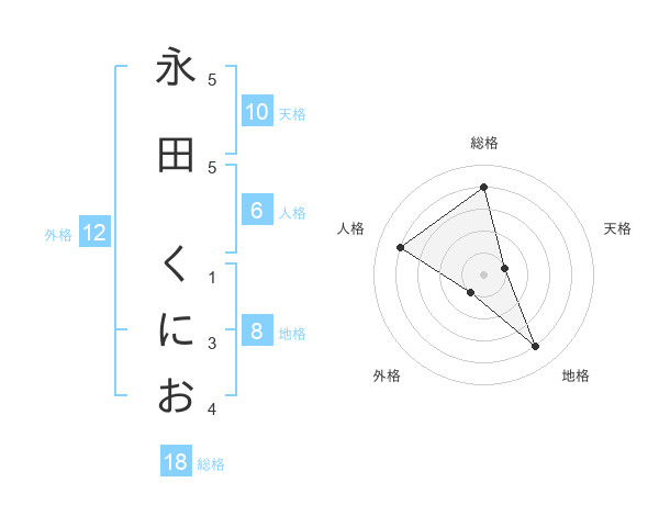 永田 くにおさんの総格は18画の4点!