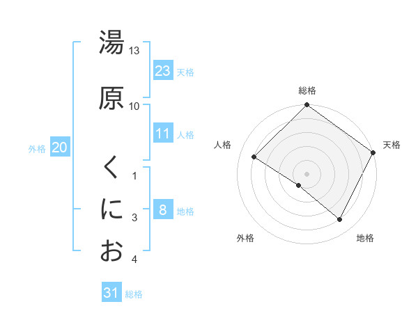 湯原 くにおさんを姓名の画数から五運を鑑定