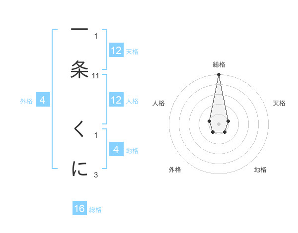 一条 くにさんの総格は16画の5点!