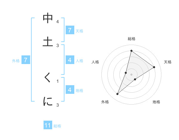 中土 くにさんの総格は11画の4点!