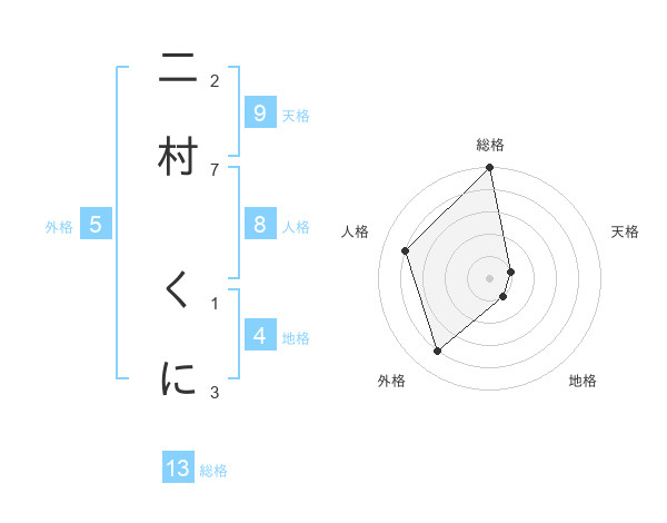 二村 くにさんの総格は13画の5点!