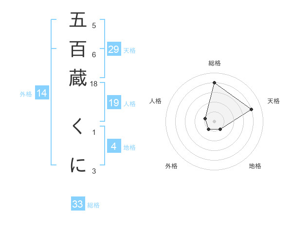 五百蔵 くにさんを姓名の画数から五運を鑑定