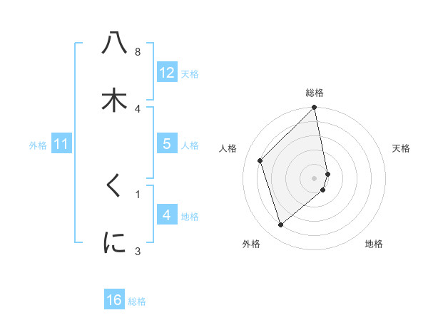 八木 くにさんの総格は16画の5点