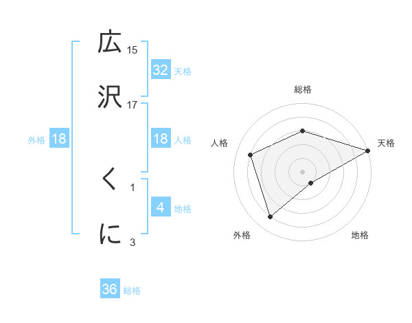広沢 くにさんの総格は36画の3点!