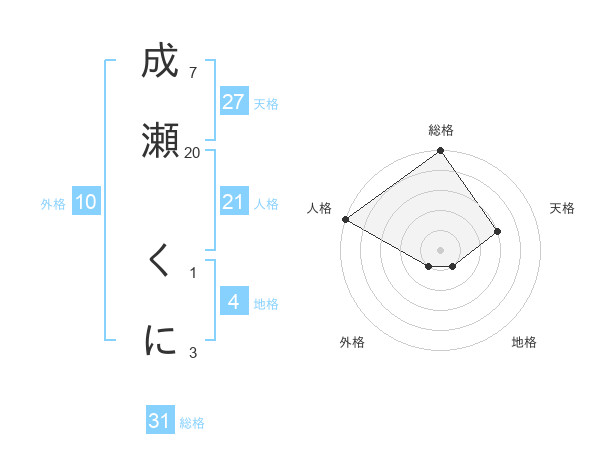 成瀬 くにさんの総格は31画の5点!