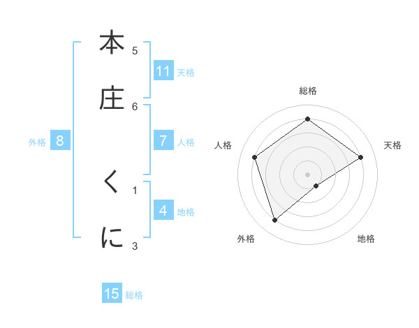 本庄 くにさんの総格は15画の4点!