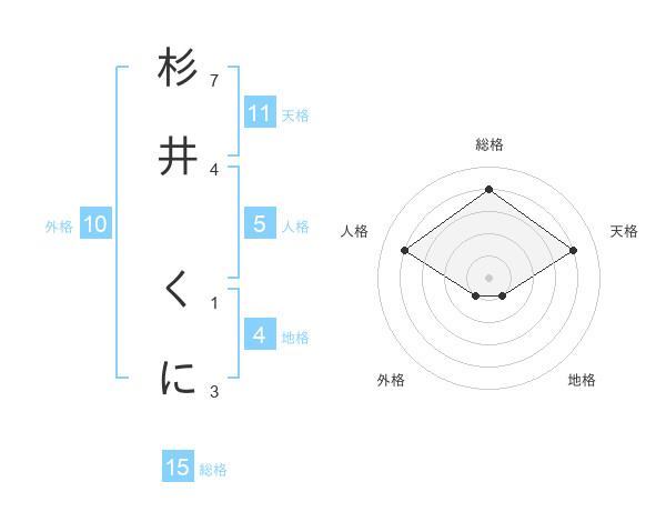 杉井 くにさんの総格は15画の4点!