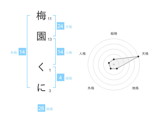 梅園 くにさんの天格は24画の5点!