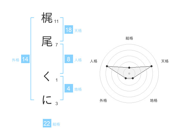 梶尾 くにさんを姓名の画数から五運を鑑定