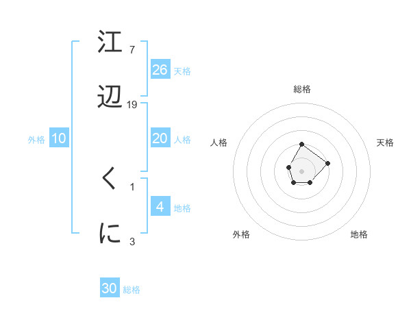 江辺 くにさんの総格は30画の2点!
