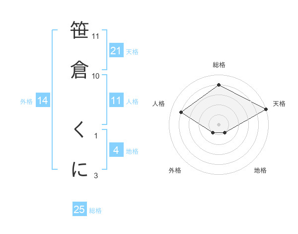 笹倉 くにさんを姓名の画数から五運を鑑定