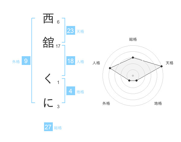 西舘 くにさんの天格は23画の5点!