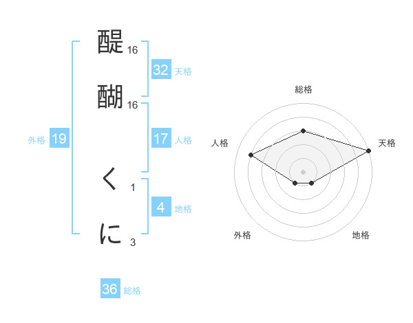 醍醐 くにさんの天格は32画の5点!