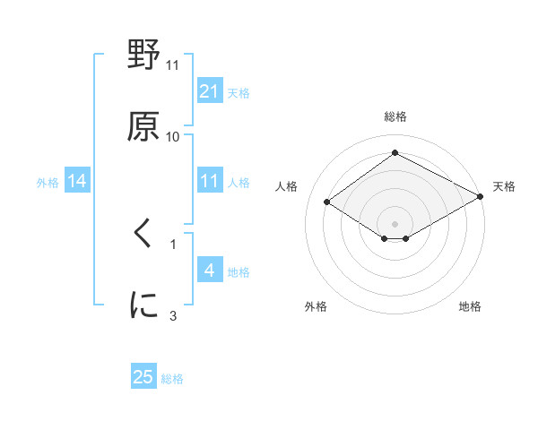 野原 くにさんの天格は21画の5点!