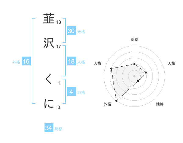 韮沢 くにさんの天格は30画の2点!