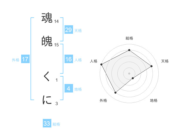 魂魄 くにさんの総格は33画の4点!
