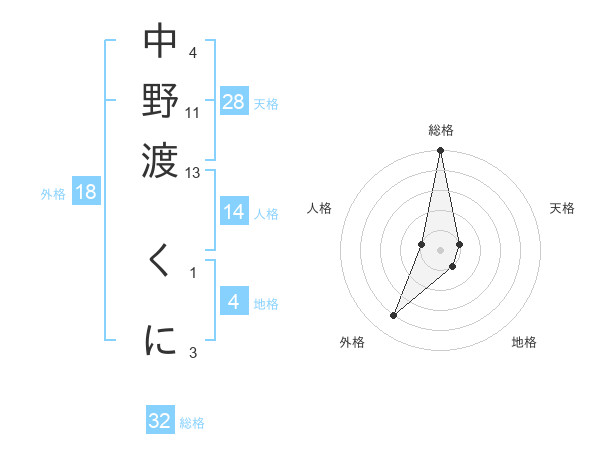 中野渡 くにさんを姓名の画数から五運を鑑定