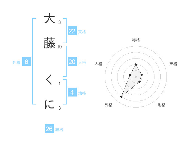 大藤 くにさんの総格は26画の2点!
