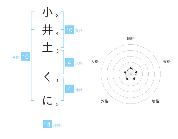 小井土 くにさんの総格は14画の1点!